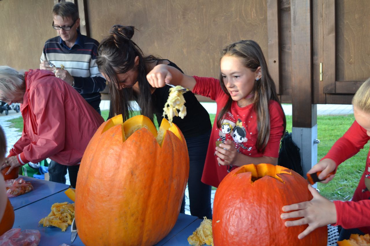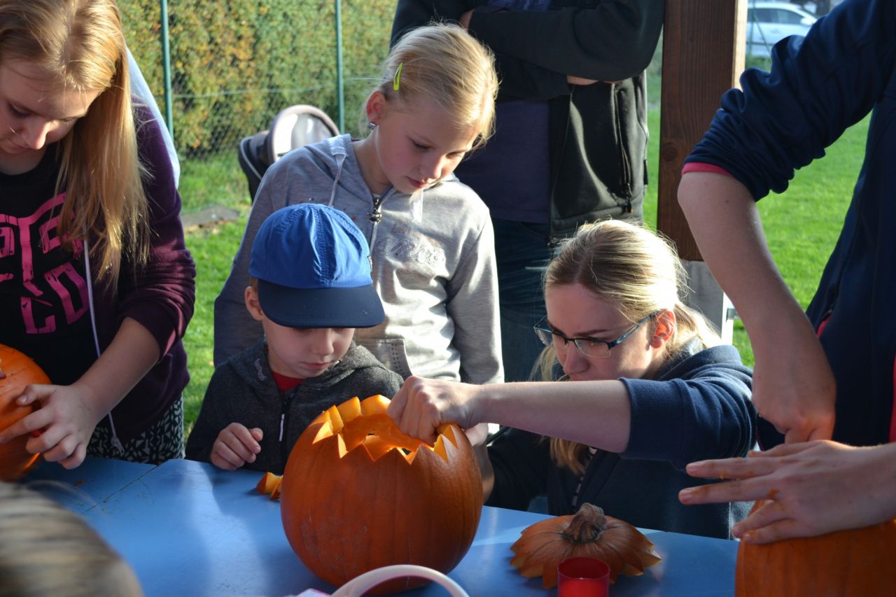 Šestá a poslední letošní akce organizovaná Spolkem pro děti ZŠ a MŠ Branka u Opavy proběhla za hezkého počasí v pátek 20. října v pavilónu základní školy. Desítky dětí a jejich rodičů se tradičně sešly ke společnému vyřezávání plodů tykve obecné (dýně). Svítící halloweenská strašidla vznikala v součinnosti maminek, babiček, tatínků a jejich ratolestí a následně ozdobila nejedno branské stavení. Kromě tradičních nástrojů - nožíku, lžičky - jeden řemeslně zdatný tatínek použil i aku vrtačku. Všichni se samozřejmě snažili povolit uzdu své fantazii a vytvořit co nejstrašidelnější svítící dýni. Dílo se nakonec všem podařilo, čehož nejlepším důkazem je závěrečné hromadné foto dětí s jejich výtvory.